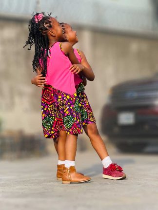 Tatas A-line Assymetric dress with Ankara & Crepe